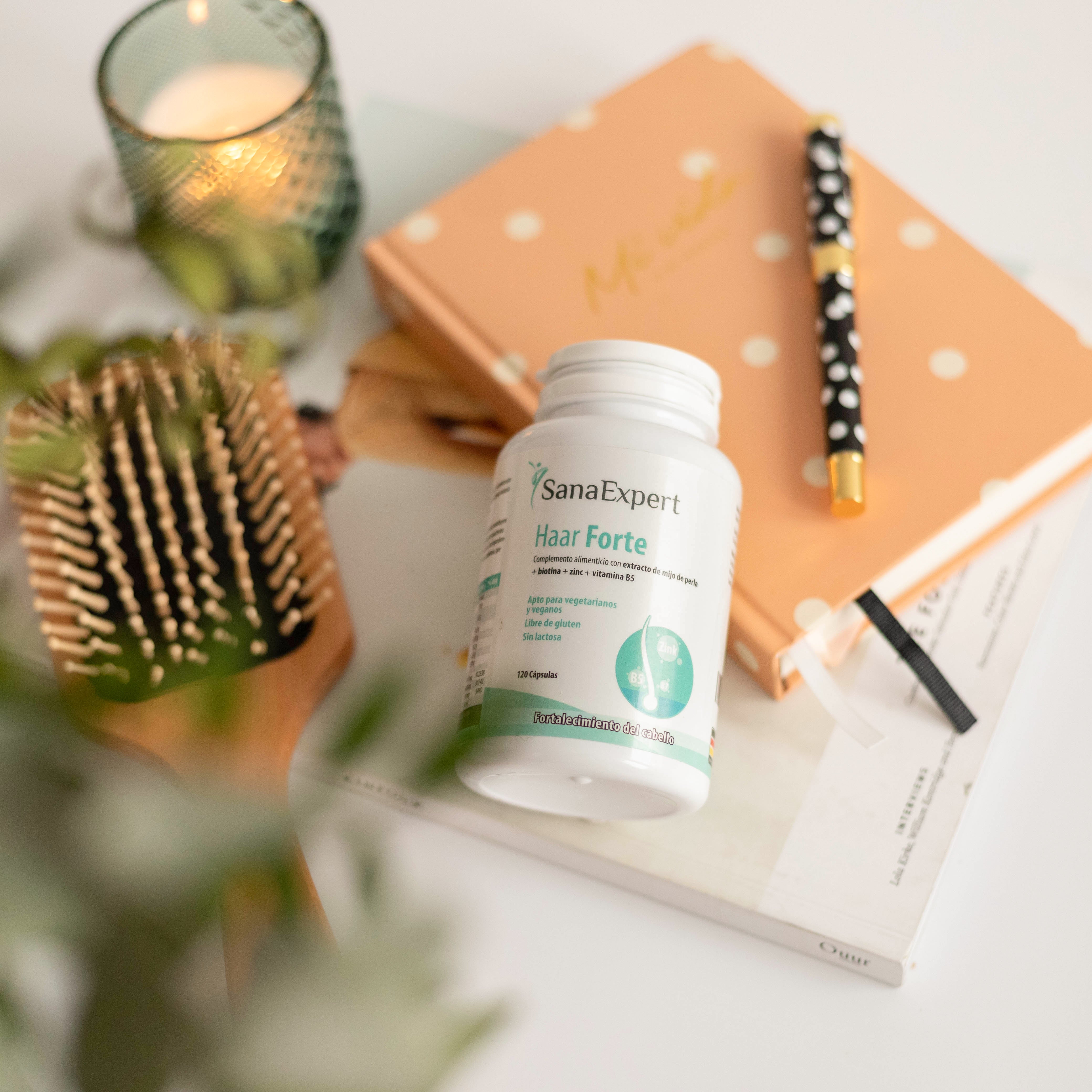 Haar Forte es uno de los superventas de SanaExpert, un suplemento natural y vegano para el cuidado del cabello y las uñas, eficaz contra la caída del cabello, contra la aparición de canas y para revitalizar el cabello apagado y sin brillo.