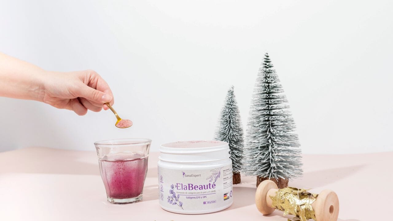 El suplemento natural SanaExpert ElaBeauté proporciona más luminosidad y vitalidad al rostro, haciendo que la piel sea más elástica y estructurada. Contiene colágeno natural, extracto de semilla de uva, vitaminas A y C, concentrados en un polvo que se puede disolver en agua para obtener un elixir de belleza perfecto para la piel y el cabello.